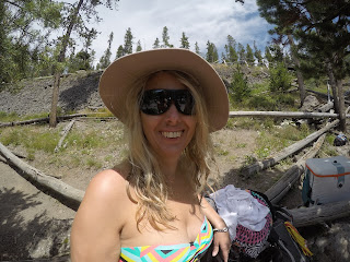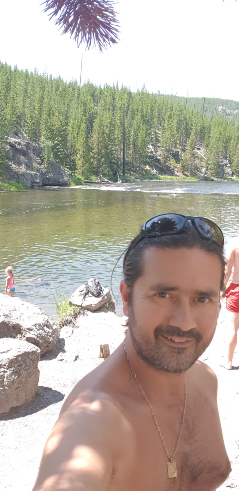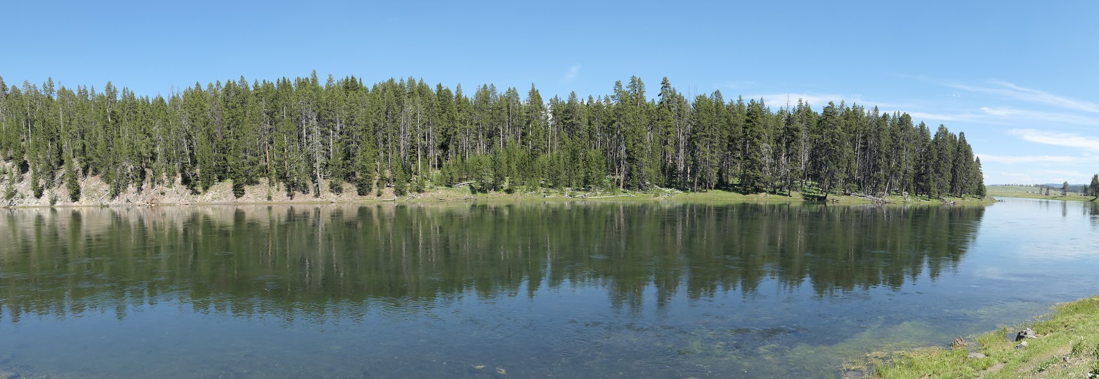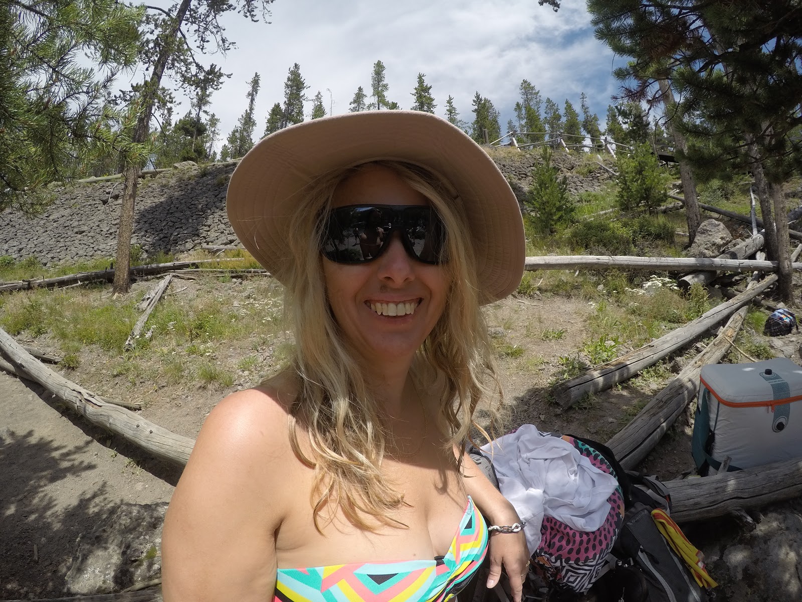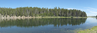 Nous voulons aller sur un point de vue qui domine Grand Prismatic mais avant nous décidons de faire un pique nique dans un point de baignade dans la rivière de Yellowstone.