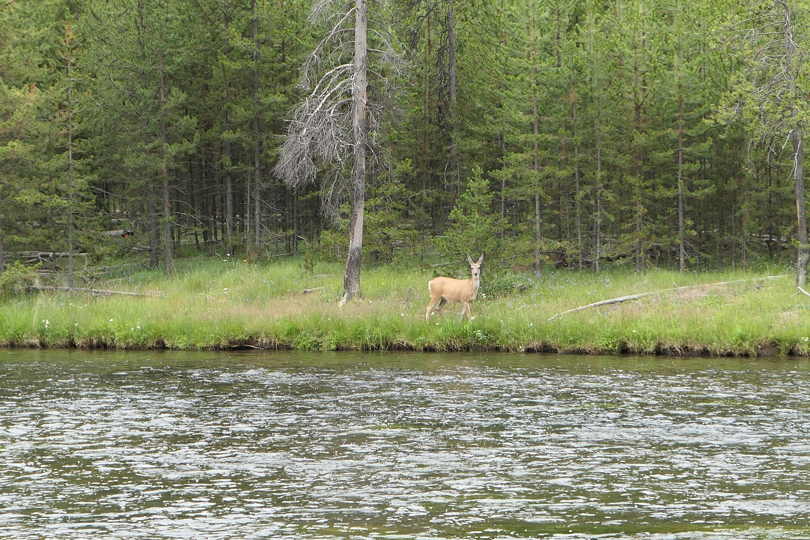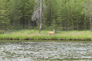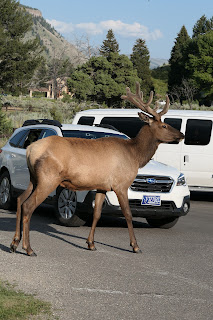 Nous avons vu aussi des biches qui sont passées à 10 cm de la fenêtre et qui traverse la route en toute tranquillité. Vous pourrez les voir sur la vidéo final de Yellowstone.