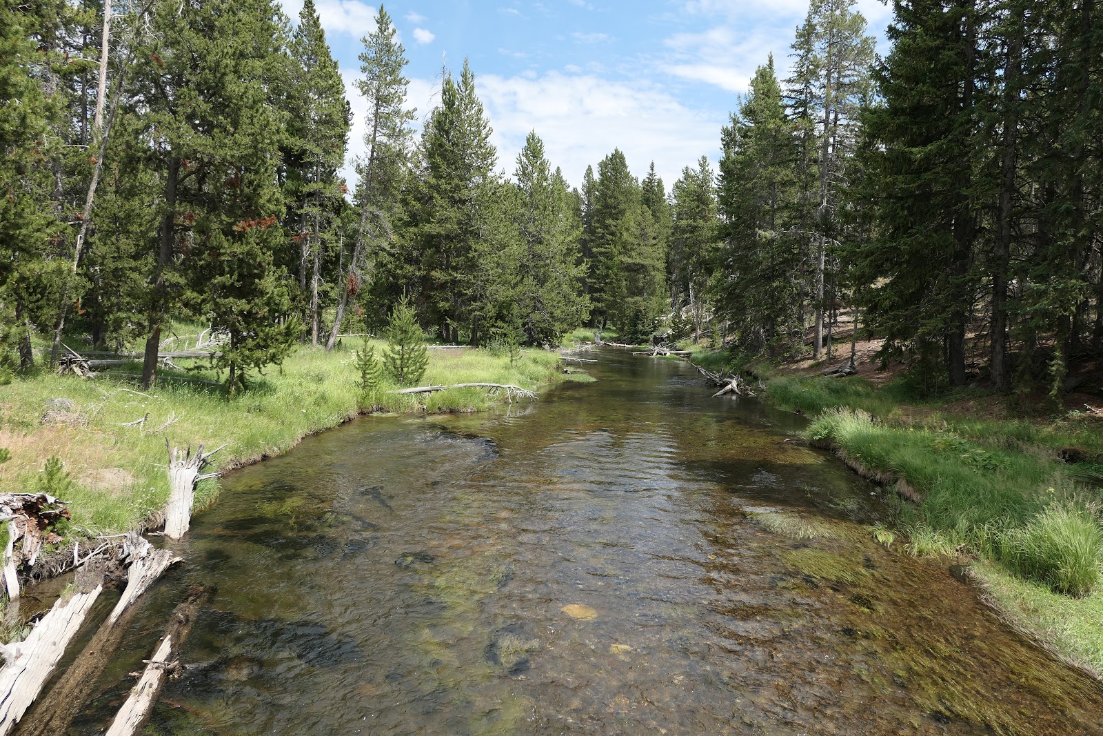Les signes des forces de l’érosion peuvent être vus partout, des canaux de ruissellement découpés à travers l’agglomération dans les bassins de geyser au drainage créé par la rivière Firehole. Ici, les montagnes Rocheuses atteignent une hauteur de 2 288 pieds (2 288 pieds), divisant le pays en deux bassins versants distincts.