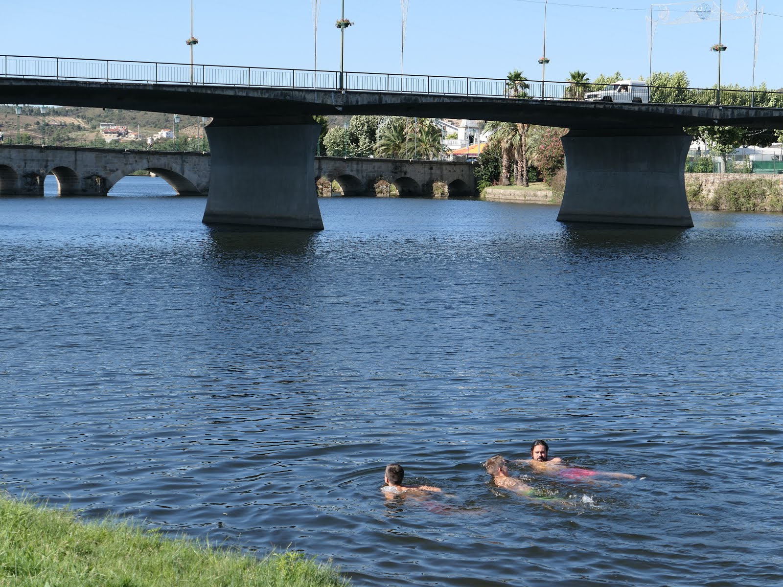 nous posons le camping car à Mirandela au bord du fleuve le Tua avec 42°C.