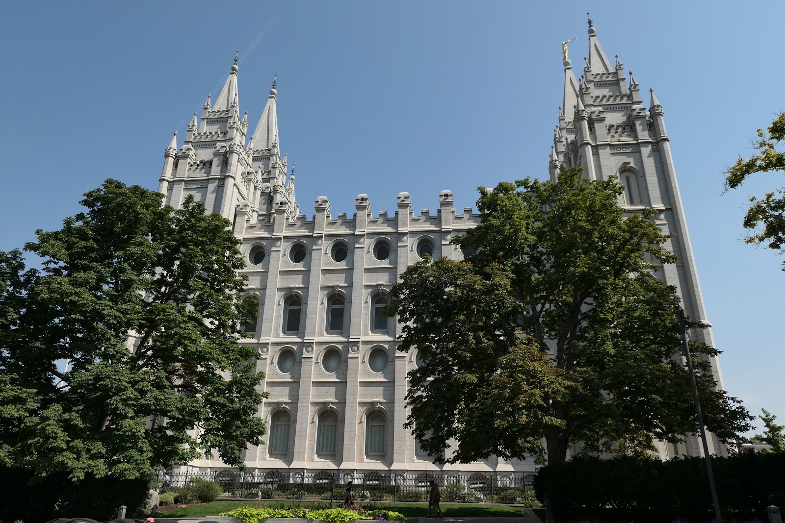 Le temple de Salt Lake est le bâtiment central est le plus grand (de plus de 130 dans le monde) et le plus connu des temples de l’Eglise de Jésus-Christ des saints des derniers jours.
